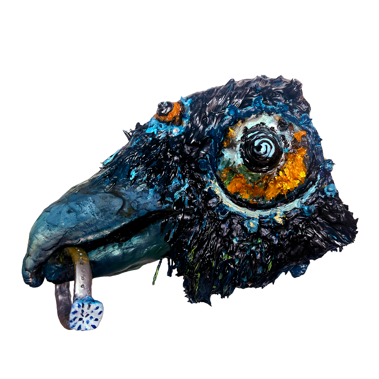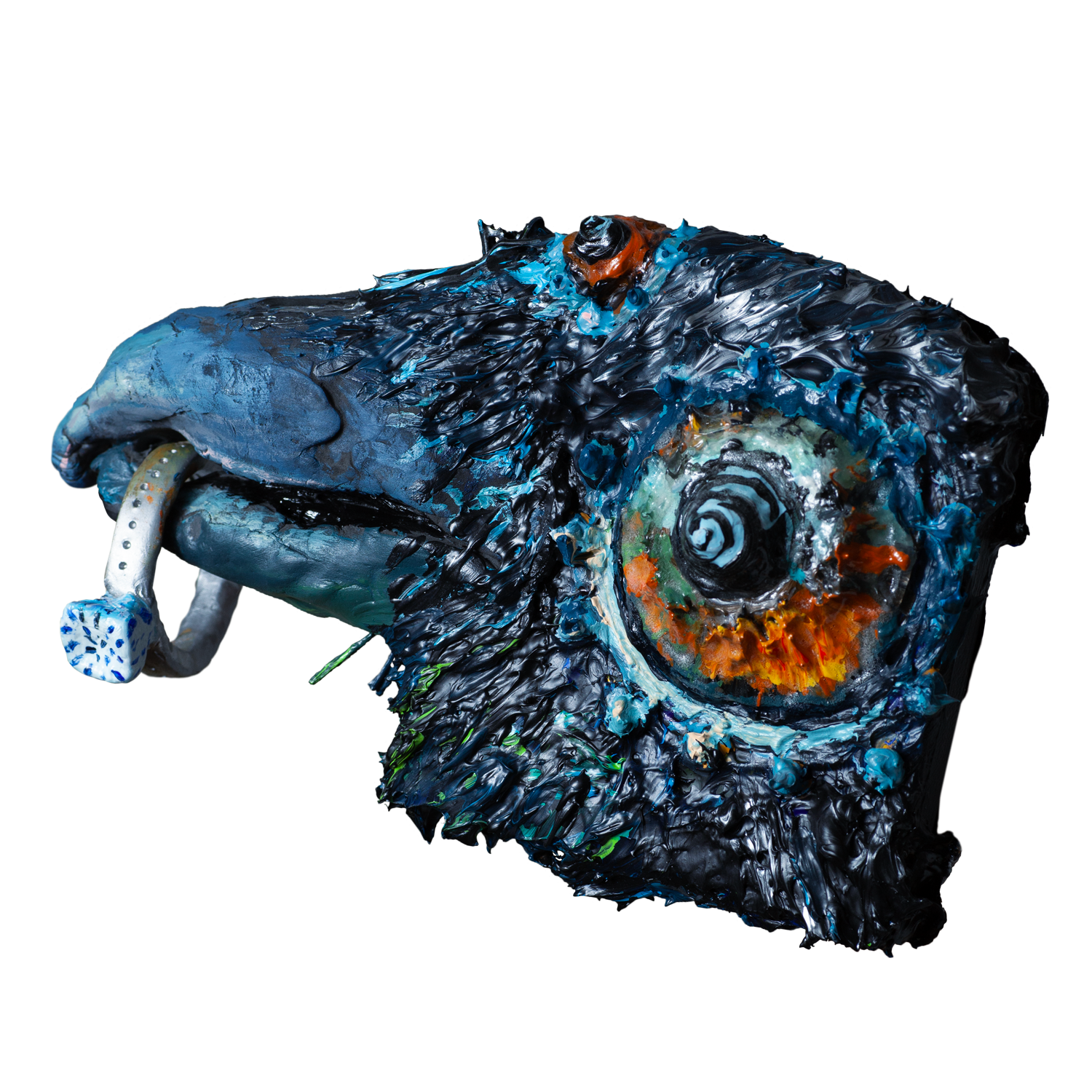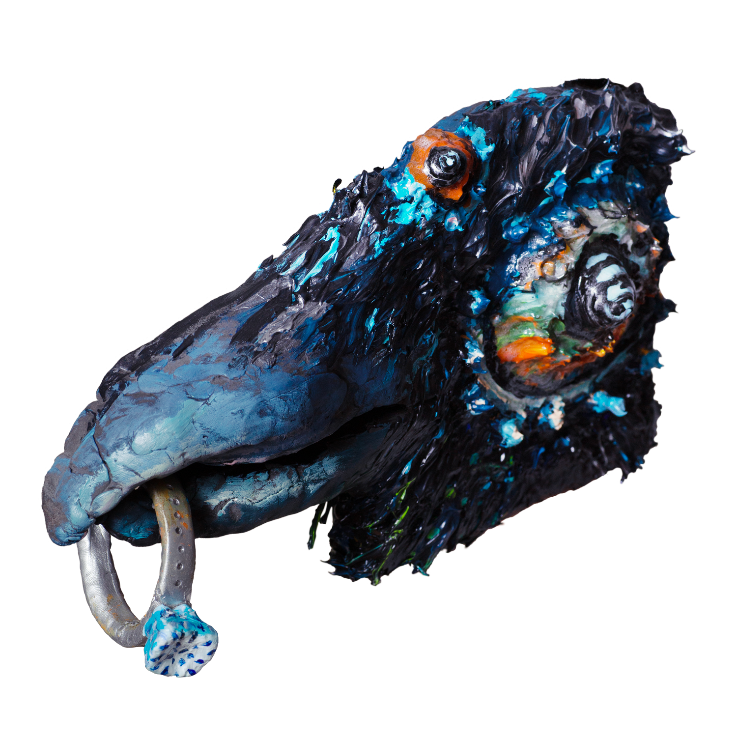 • acrylic, polymer clay, and wire on canvas