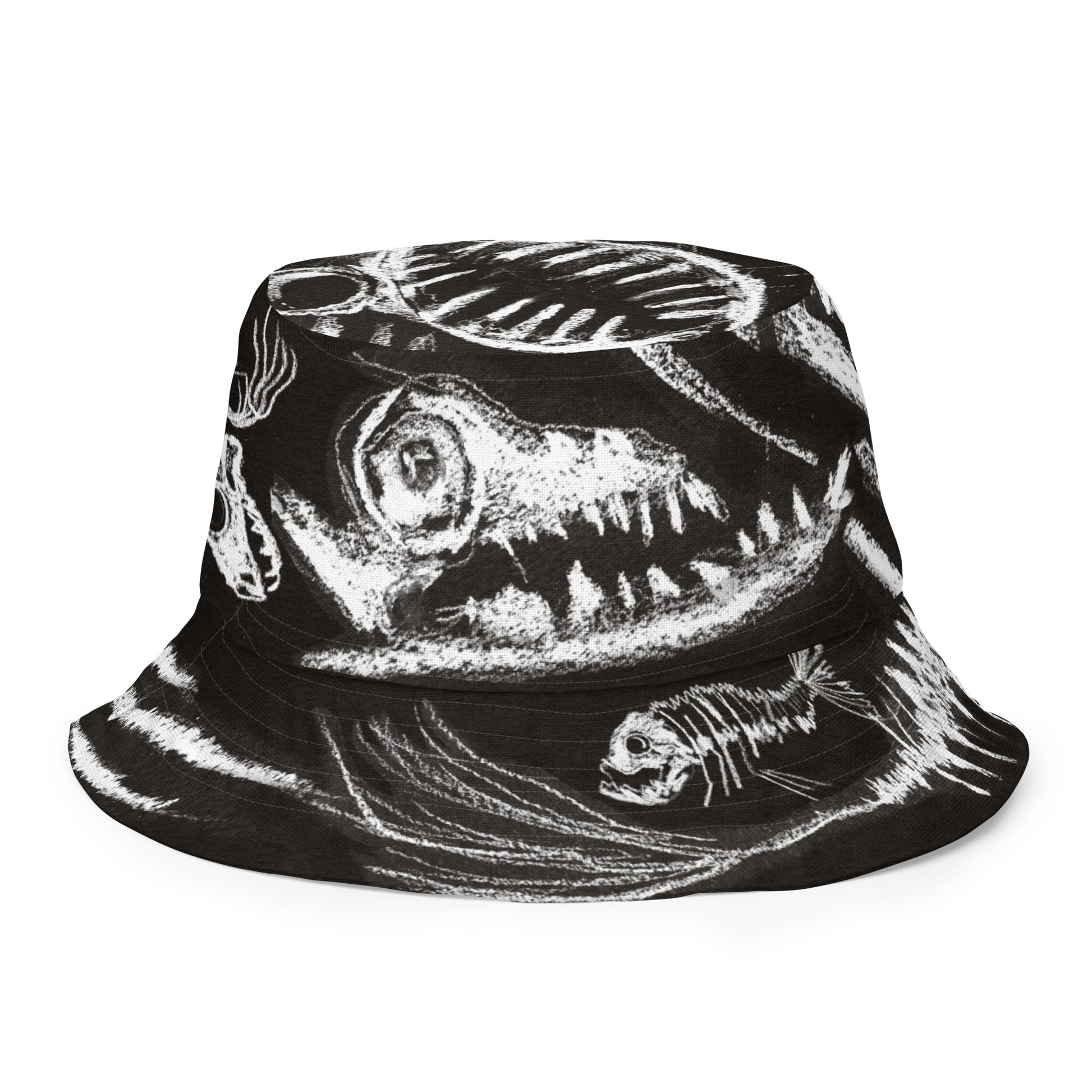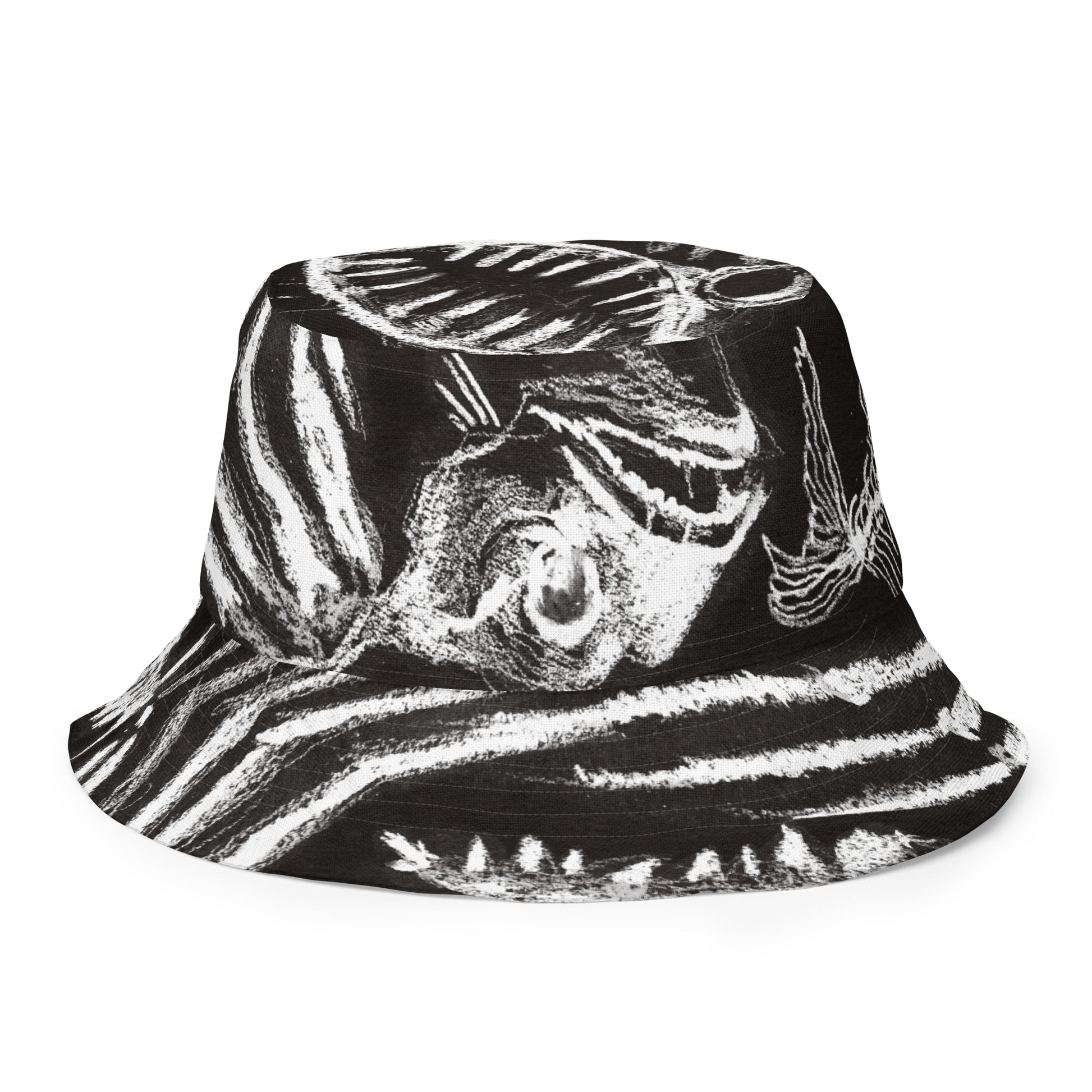 This hat embodies the yin and yang of terror, flipping from night to day, just like the unending wrath of Mr. and Mrs. Fishsticks. Evade Mr. Fishsticks in the shadows, or escape from Mrs. Fishsticks as she swims through your dreams—either way, there’s no rest from the Fishsticks' eerie pursuit. Its reversible design offers endless styling options, helping you survive the horrors of night and day, no matter what—or who—lurks beyond.